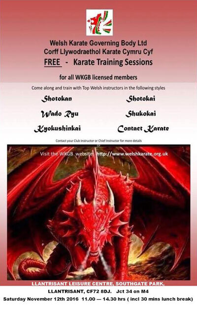 Come along and train with top Welsh instructors in Shotokan, Shotokai, Shukokai, Wado-Ryu, Kyokushinkai and contact Karate.